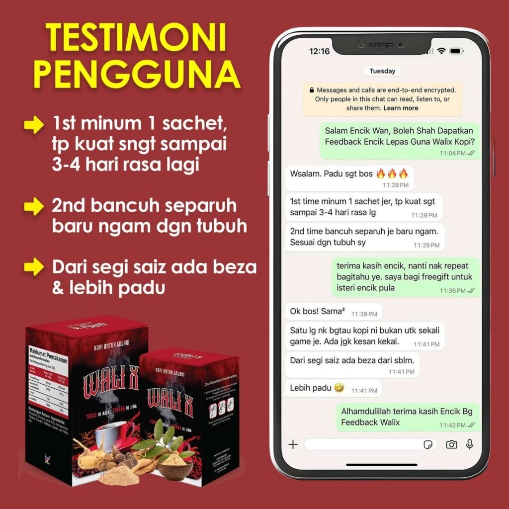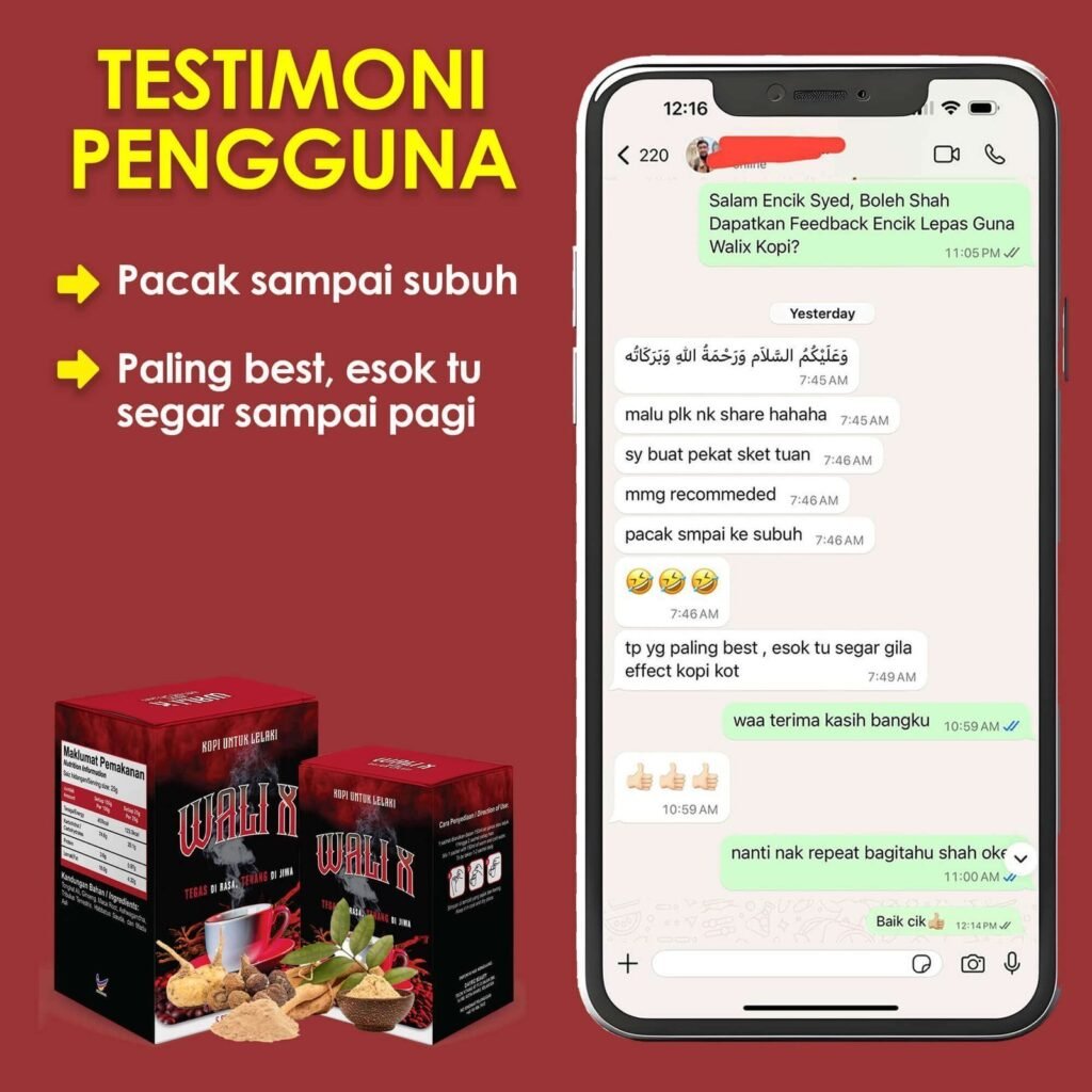 penggunaan WALIX COFFEE konsisten membantu pulihkan badan khususnya zakar.